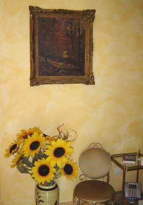 Eine Wandfläche mit Fensteröffnungen erscheint durch den Gegenlichteffekt dunkler - die gegenüberliegende Wand im vollen Licht dementsprechend heller. Dies bedeutet, daß eine akzentuierte Fensterwand weniger brillant und leuchtend erscheinen würde, als beispielsweise die angestrahlte, gegenüberliegende Wandfläche. Wände im Streiflicht bringen besonders gut Oberflächenstrukturen oder Glanzeffekte zur Geltung. Deckenflächen wirken durch die Verschattung dunkler als die angrenzenden Wandflächen. Künstliche Beleuchtung beeinflusst erheblich die Farbwirkung. Warmes Glühlampenlicht läßt z.B. kühle Farbtöne im Grün-, Blau-, und Violettbereich vergrauter erscheinen. Umgekehrt kann ein frisches Gelb bei kühlem Kunstlicht auch unangenehm grünlich wirken. Es empfiehlt sich daher, ausgewählte Farbtöne immer bei Tages- und Kunstlicht zu beurteilen.